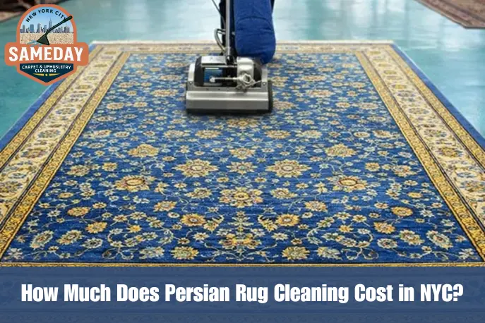 Persian rug cleaning in NYC typically costs $3β$8 per square foot, meaning a 5Γ8 rug (40 sq ft) runs about
